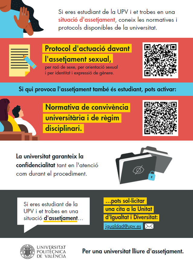 La Universitat Politècnica de València, atès el compromís institucional amb el principi d’igualtat entre dones i homes en el marc de la Llei orgànica per a la Igualtat Efectiva de Dones i Homes, així com amb el principi d’igualtat de tracte i no discriminació, impulsa les polítiques i accions pertinents a través de la Unitat d’Igualtat sota la direcció del Vicerectorat d’Art, Ciència, Tecnologia i Societat.